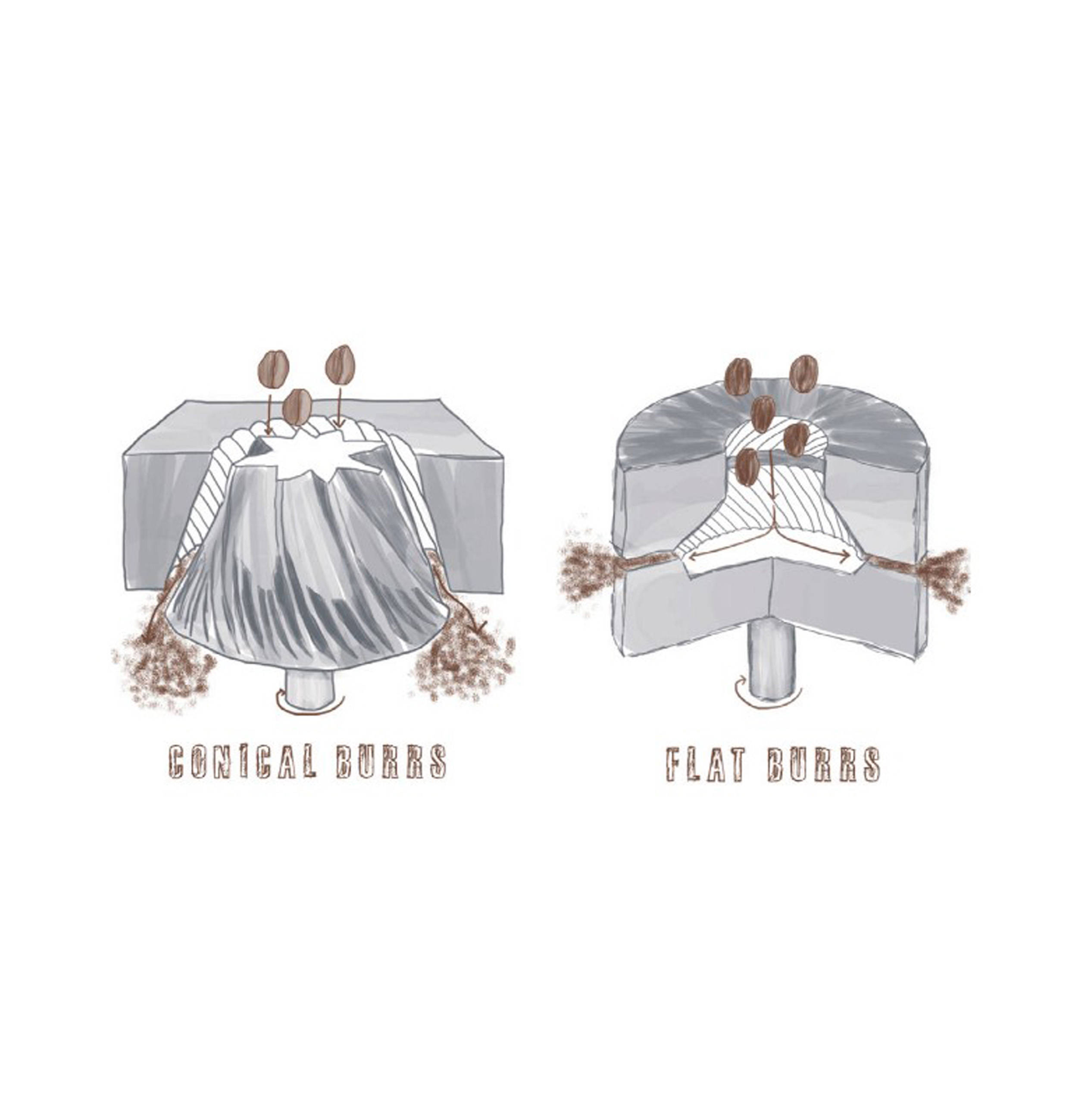 Das Kegelmahlwerk und das Scheibenmahlwerk.